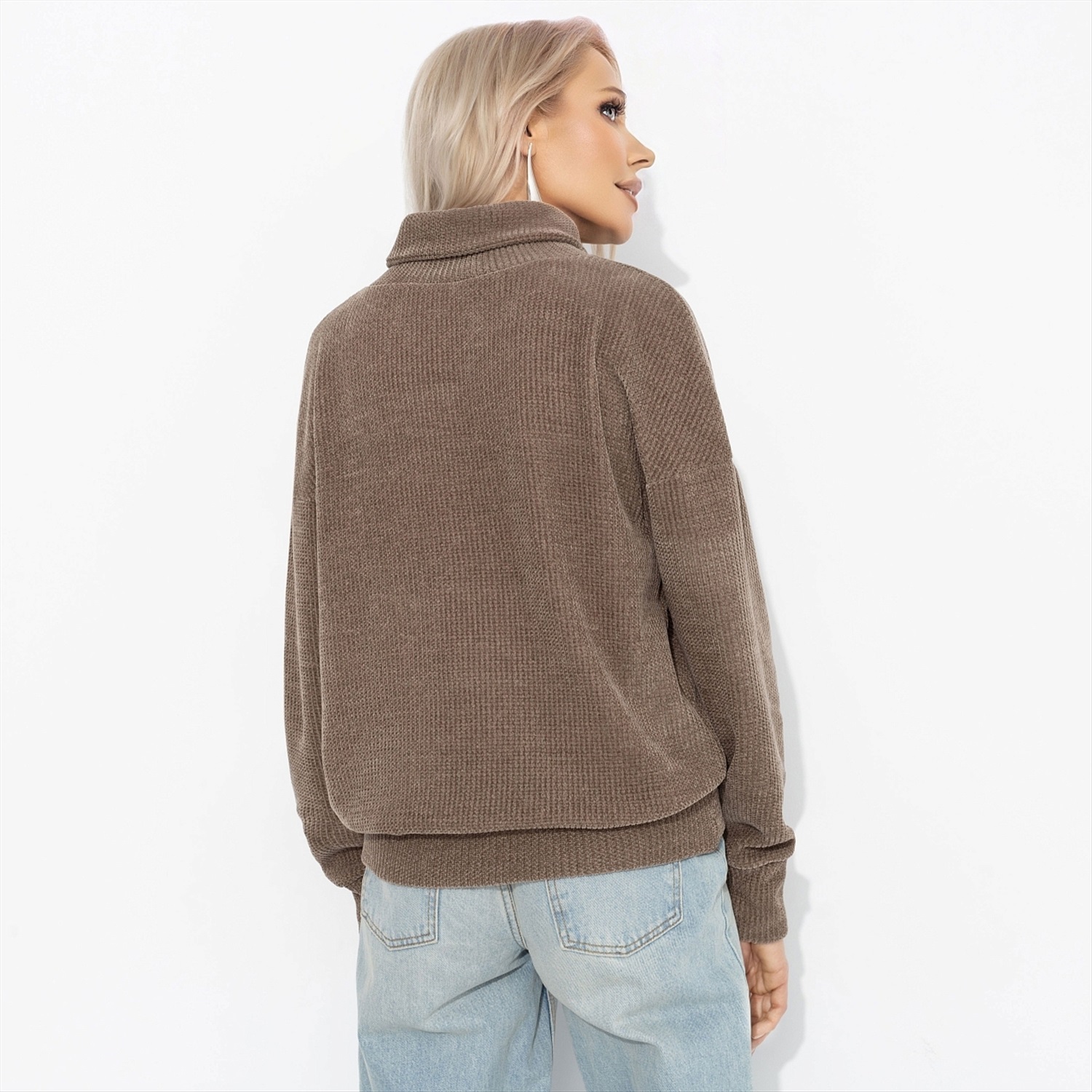 Кофейня на углу, глянцевая чашка латте с ириской тоффи, легкий джаз и ощущение, что весь мир замедлился ради этого момента уюта. Он будто создан для любви: обнимает, согревает и включает ту самую волну нежности. Это комфорт, вызывающий лёгкое эмоциональное привыкание. С ним не хочется расставаться ни на день. Да и не нужно! Джемпер свободной посадки с акцентной горловиной.