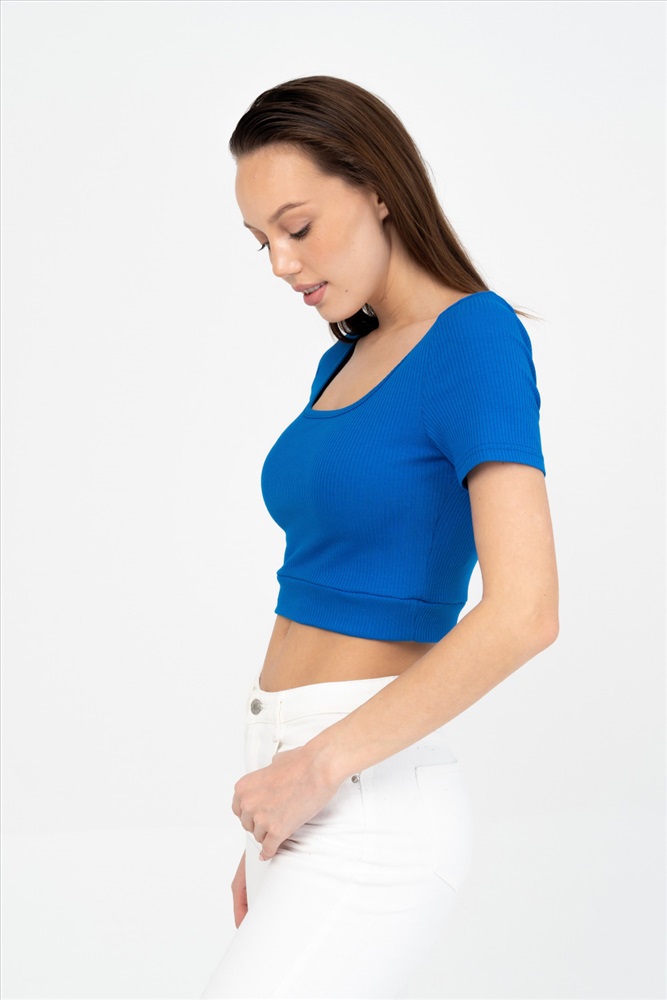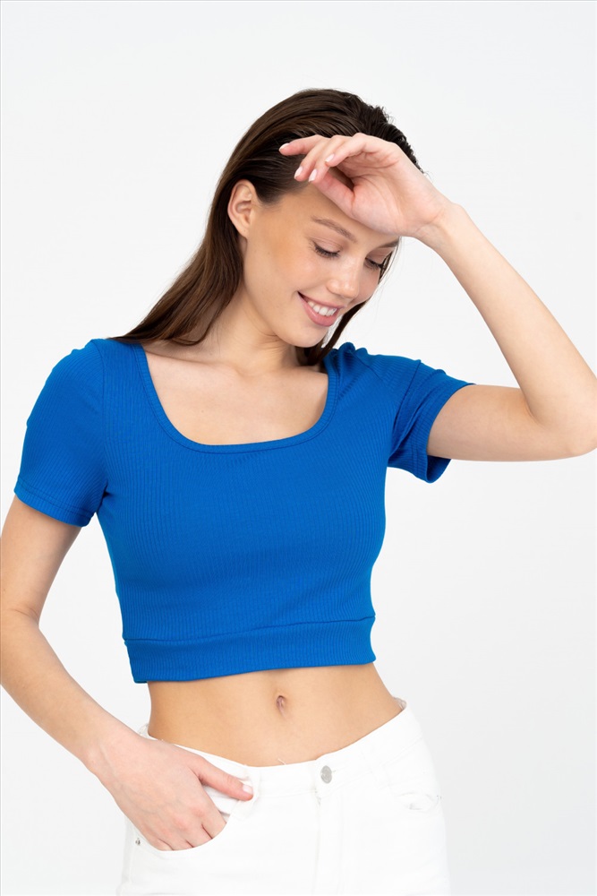 Укороченный джемпер из вискозы с лайкрой с красивым вырезом горловины. Рукава короткие втачные. Эффектный, яркий и одновременно базовый джемпер, который впишется в любой гардероб. Его можно носить как вспомогательный элемент, например под наши сарафаны, комбинезоны и даже свитшоты с глубоким вырезом горловины, так и самостоятельно.