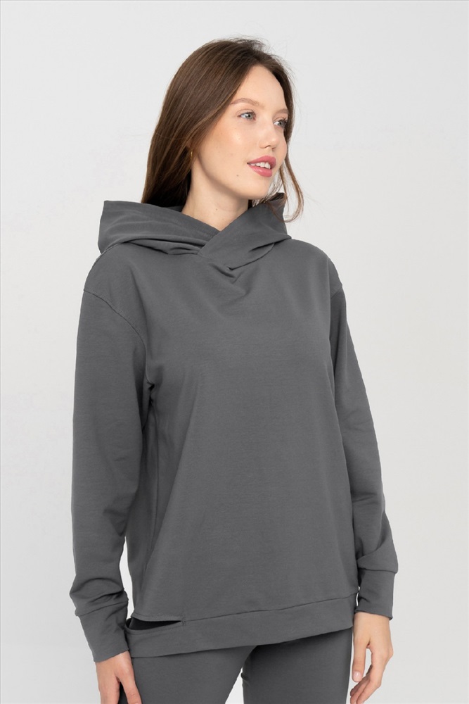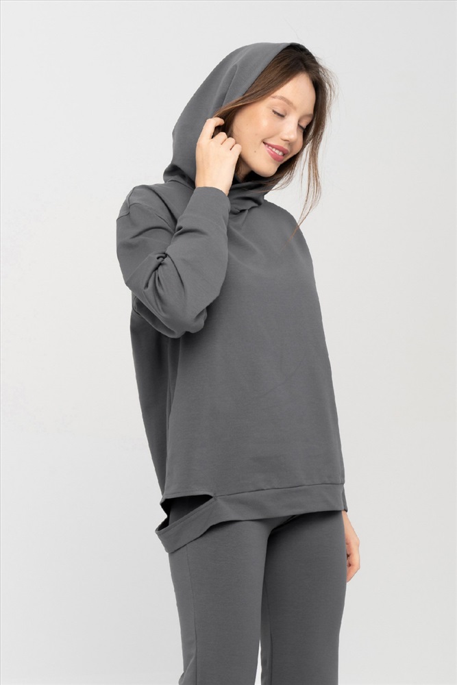 Худи из мягкого хлопкового футера свободного силуэта с капюшоном и карманами в боковых швах, рукава на манжете, низ на поясе с декоративной щелью. Выглядит очень эффектно и стильно. Популярный oversize и мягкий шелковистый футер – составляющие городского стиля и повышенного комфорта. Это худи станет идеальным дополнением вашего гардероба. Его можно сочетать как с брюками, так и с юбками.
