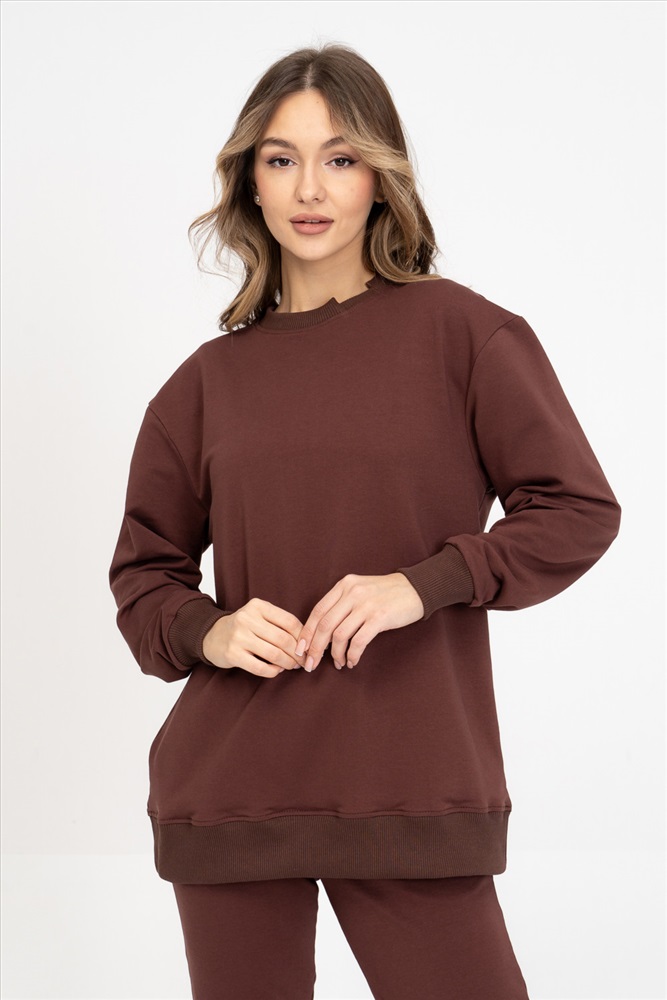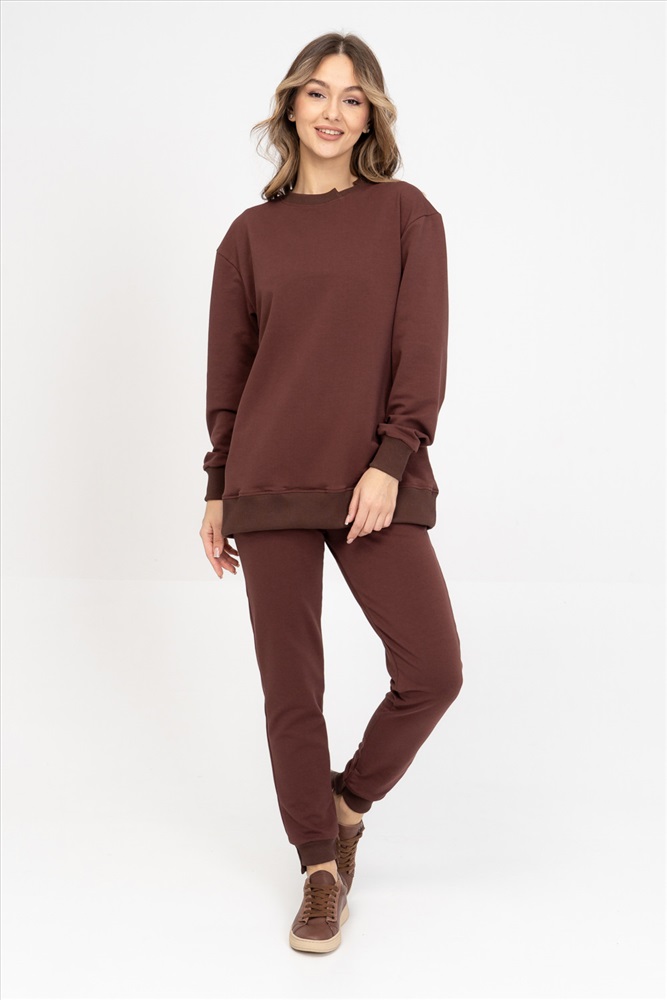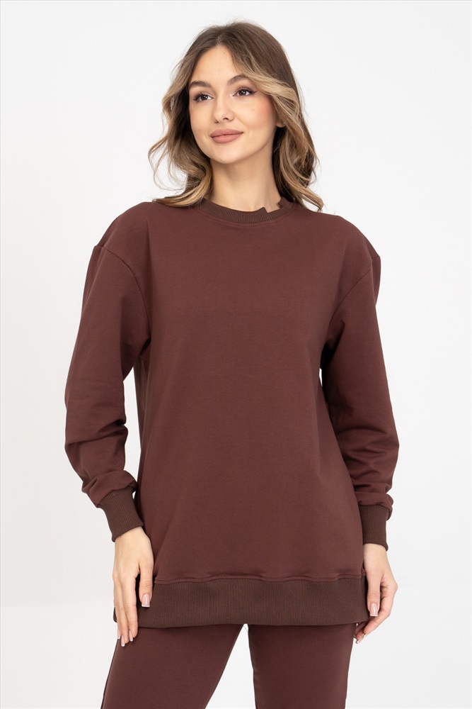Свитшот из мягкого хлопкового футера свободного силуэта. Горловина круглой формы с декоративной планкой из контрастного трикотажа. Рукава объемные на манжете. Все эти детали делают эту модель особенной привлекательной, выглядит очень эффектно и стильно. Быть модной с заботой о себе можно!