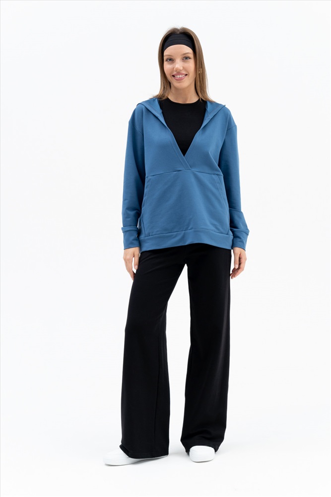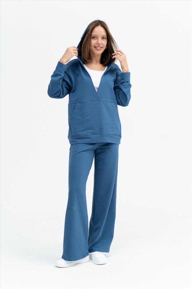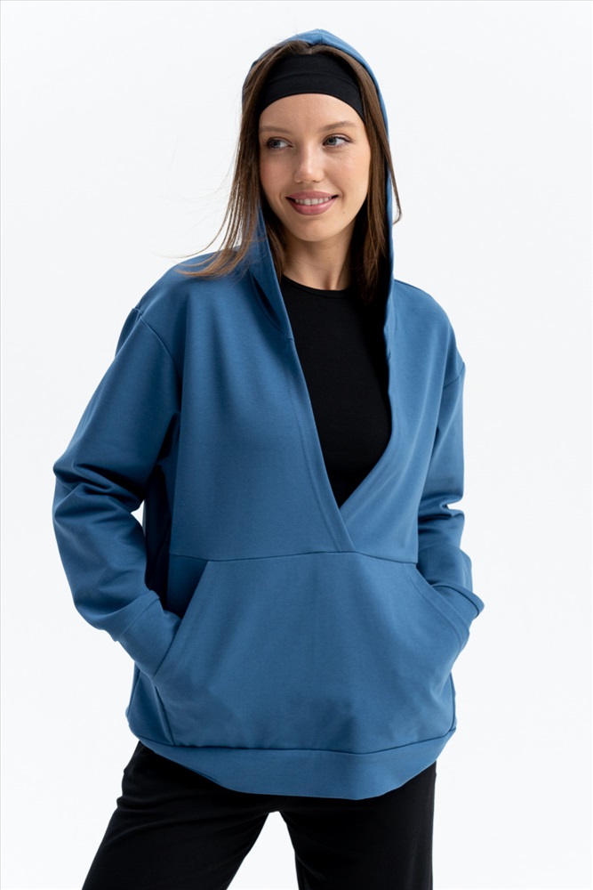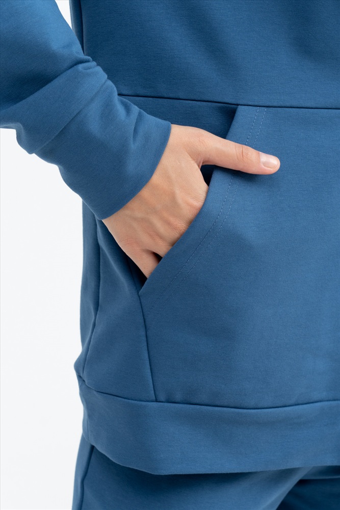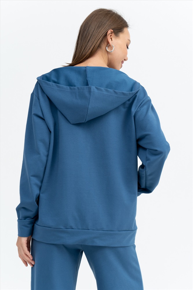 Джемпер из мягкого хлопкового футера имеет длинный рукав со спущенной линей плеча, капюшон, накладной карман-кенгуру и глубокий вырез горловины спереди, благодаря чему модель смотрится стильно и модно. Свободный объём оверсайз не стесняет движений и комфортно садится по фигуре. Данную модель предпочтительнее комплектовать с топом, майкой или водолазкой, в зависимости от сезона. Идеальный вариант для тех, кто любит многослойность.