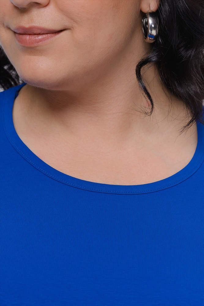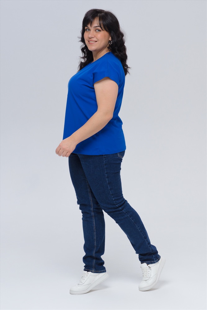 Джемпер из мягкого, гладкого трикотажного полотна кулирка с лайкрой. Натуральный хлопок в составе тактильно приятен к телу и обладает хорошей воздухопроницаемостью. Джемпер со спущенным плечом и имеет фигурную горловину, выполненную из основной ткани изделия. Необычная горловина делает модель модной и трендовой.