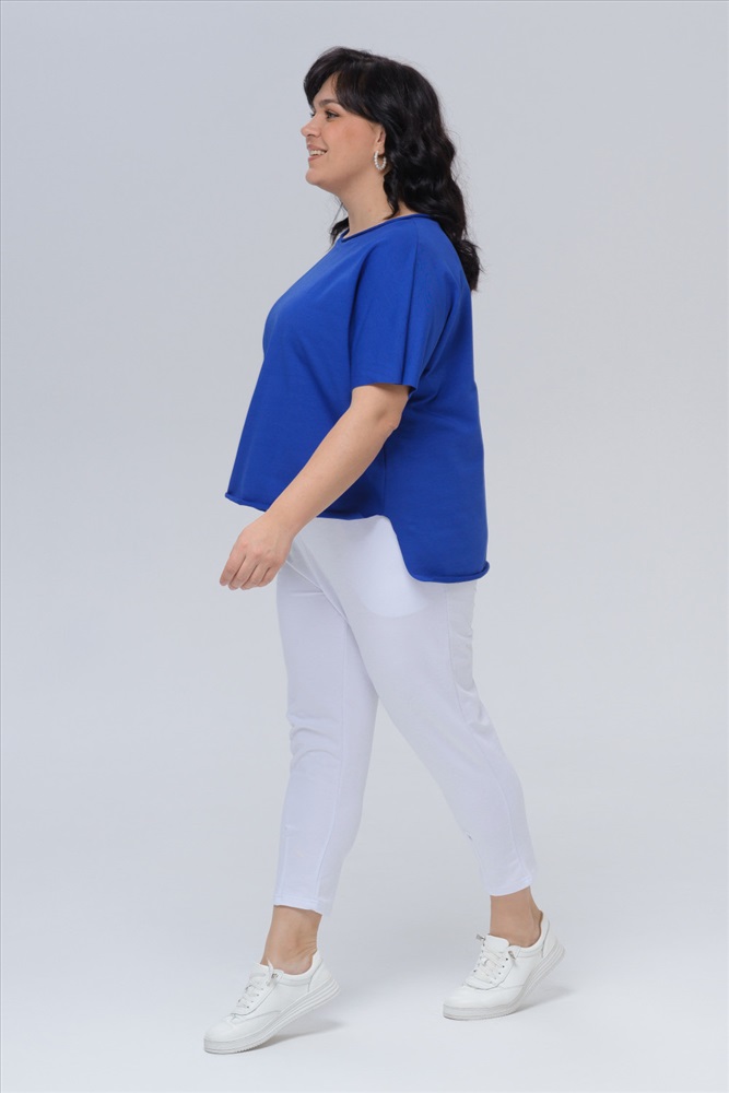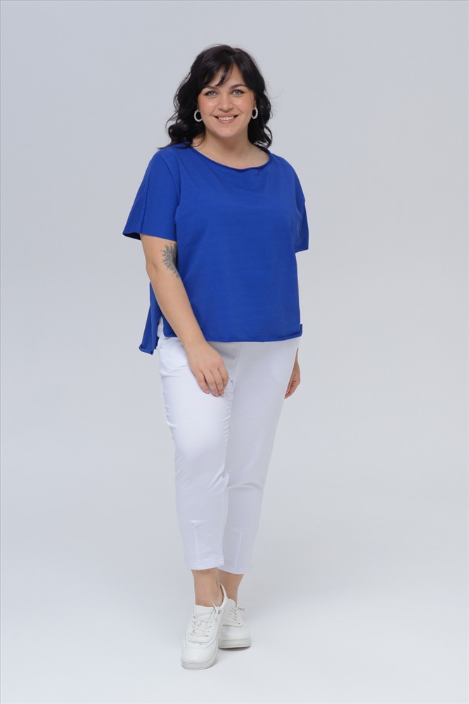 Производитель: POL`MOTIVE Код товара: 25-587L3-WB Состав: х/б - 65 %; л. - 10 %; ПА - 25 % Вид полотна: Футер 2-х нитка цвет: синий Коллекция: BASE Безупречный базовый джемпер-туника из натурального хлопка получилась предельно лаконичной и универсальной. Модель выполнена из хлопкового трикотажа. При соблюдении рекомендаций по уходу, изделие на долго сохранит привлекательный внешний вид. Правильная посадка, актуальный прямой крой и спущенная линия плеча органично дополняют классическую модель. За счет комплементарной длины её удобно заправлять и носить навыпуск - она безупречно садится по фигуре и дарит ощущения комфорта и расслабленности. Однотонная футболка отлично справляется с многозадачностью и без проблем вписывается в офисный, спортивный, вечерний или домашний аутфит. Яркие оттенки из палитры добавят свежести образу, а нейтральные сделают стилизации более практичными. Её можно носить самостоятельно или надевать под любую одежду, особенно стильно она будет смотреться в комбинации под пиджак и как жилет под блузу. 50 размер 63,5 см. 52 размер 63,5 см. 54 размер 65,5 см. 56 размер 65,5 см. 58 размер 67,5 см.