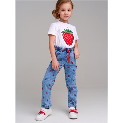 Джинсы для девочки. Эластичный пояс со шнурком. Comfort fit – свободный крой брючин. Накладные карманы с клапанами на боковых швах.