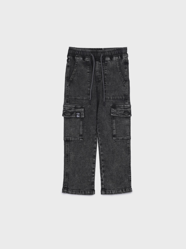Джинсы детские для мальчика. BAGGY FIT - модный расслабленный крой. Средняя посадка. Джинсы на резинке со шнурком. Накладные карго-карманы.