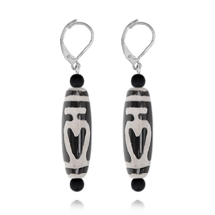 Серьги с тибетскими бусинами Дзи, изготовленными вручную из натурального агата.