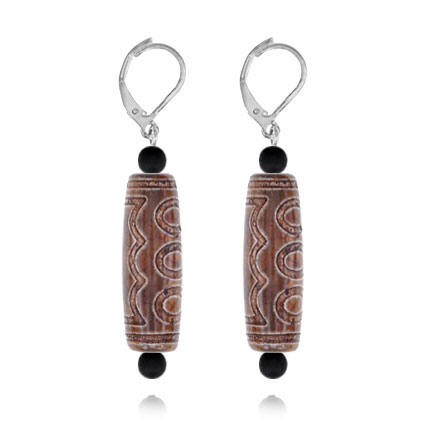 Серьги с тибетскими бусинами Дзи, изготовленными вручную из натурального агата.