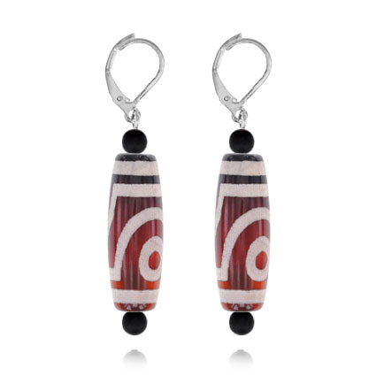 Серьги с тибетскими бусинами Дзи, изготовленными вручную из натурального агата.