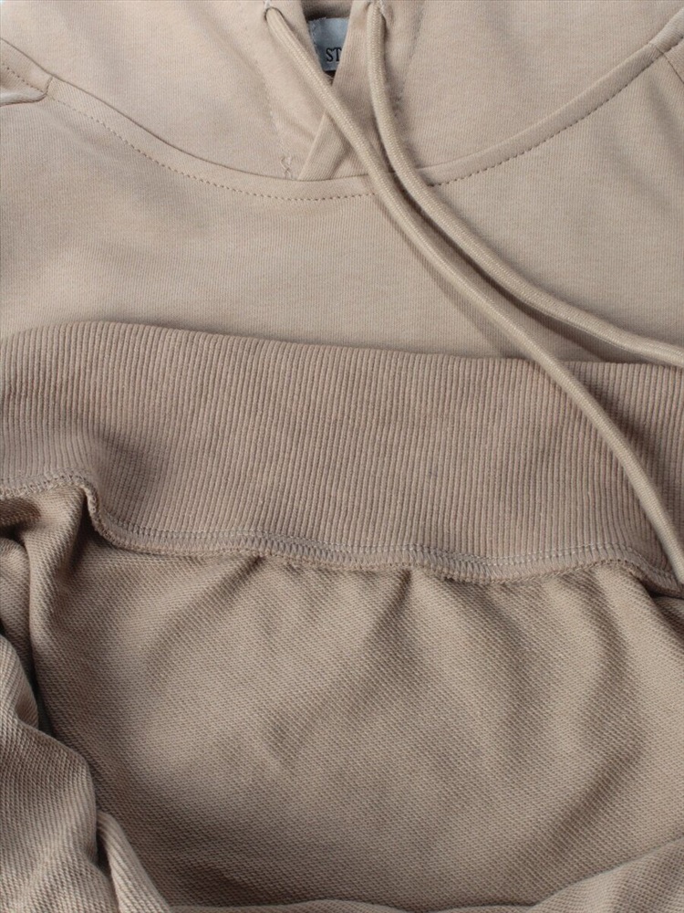 Кол-во в упаковке: 1 Костюм спортивный женский (хлопок 90%, полиэстер 10%) Модель сезона: весна-лето. Артикул: E102 BEIGE Фото сделано на модели размера 44/46 Рост модели 175 см., объем груди 90, талия 72, бедра 96. Витринный образец размера L — 46 российский: Олимпийка: Капюшон с регулировочным шнурком, несъемный, ткань в два слоя. Рукава и и по низу трикотажные манжеты. Длина плеча до линии рукава 12 см. Длина рукава от линии плеча 59 см. Длина спины 63 см. Объем спины/груди 102 см. Объем талии 88 см. (тянется +8 — 12 см.) Брюки: Два кармана спереди, без молнии. Пояс на резинке со шнурком, ширина 5 см. Низ штанины на резинке. Объем талии 70 см. (тянется +6 — 8 см.) Объем бедер 100 см. Объем колена 42 см. Объем по нижней части штанины, в районе резинки 26 см. Длина внешней части штанины (замеры из под пояса) 98 см. Длина внутренней части штанины 76 см. Посадка (с поясом) 29 см. Состав ткани: 90% хлопок, 10% полиэстер. Размер указанный на спортивном костюме и соответствие российским стандартам: L — 44/46 российский XL — 46/48 российский 2XL — 48/50 российский 3XL — 50/52 российский Комментарии к товару