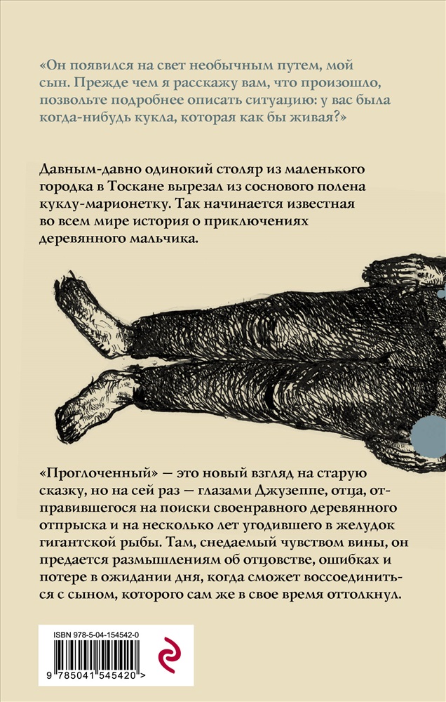 «Проглоченный» — это новый взгляд на старую сказку, но на сей раз — глазами Джузеппе, отца, отправившегося на поиски своенравного деревянного отпрыска и на несколько лет угодившего в желудок гигантской рыбы. Там, снедаемый чувством вины, он предается размышлениям об отцовстве, ошибках и потере, в ожидании дня, когда сможет воссоединиться с сыном, которого сам же в свое время оттолкнул.