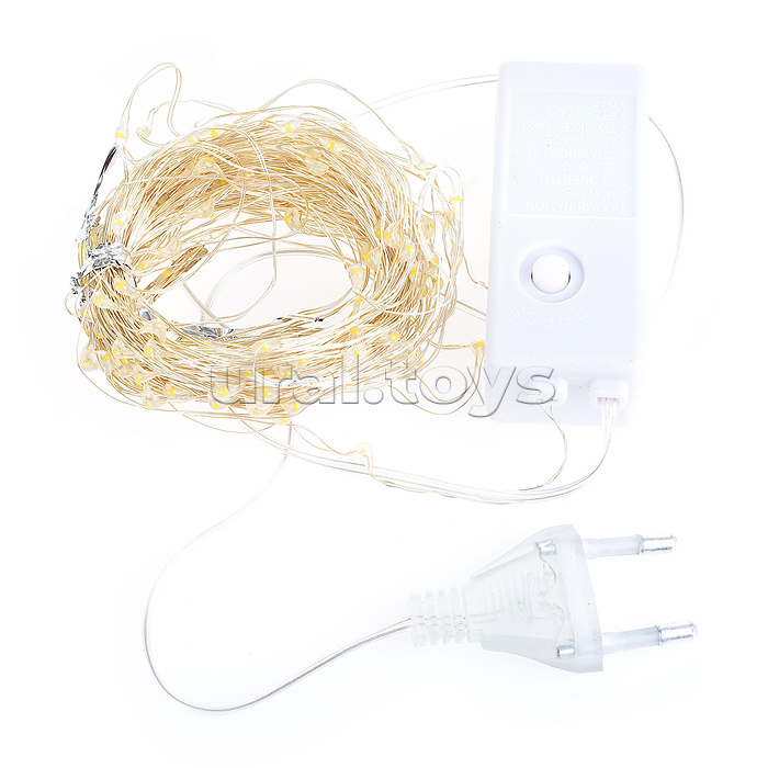 Производитель: Снеговичок; Наличие: >10 Длина: 10 метров. Количество лампочек: 100. Работает от сети. Состав: пластик, полимерные материалы. Соответствует требованиям безопасности продукции.