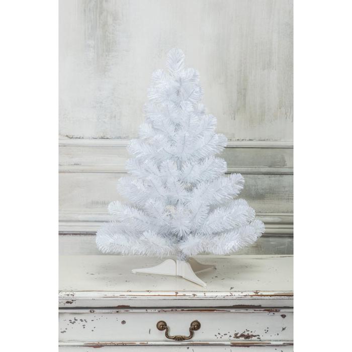 Белая настольная ёлка высотой 60 см с диаметром нижнего яруса 40 см создаёт лёгкую и праздничную атмосферу в любом помещении. Гибкие ПВХ-ветки можно аккуратно отогнуть, чтобы придать дереву естественную форму и желаемую густоту. Её лаконичный дизайн без декора подчёркивает красоту снежного оттенка и гармонирует с разными стилями интерьера — от классики до шебби-шик.