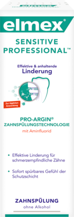 Über diesen Link erhalten Sie weitere EU-Informationen über Inhaltsstoffe. Anwendungshinweise Elmex Mundspülung Sensitive schenkt schmerzempfindlichen Zähnen eine sofortige Linderung und das spürbare Gefühl einer Schutzschicht. Die Zahnspülung, die ergänzend zum täglichen Zähneputzen Anwendung findet, enthält keinen Alkohol und ist daher besonders mild.