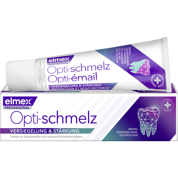 Для эффективной защиты зубов и эмали примените зубную пасту elmex Opti-melt Professional Герметик и укрепление. Эта зубная паста для эмали имеет специальную формулу, которая реминерализует ослабленную эмаль, добавляя минералы, одновременно укрепляя ослабленные участки. Зубная паста для эмали содержит клинически подтвержденную технологию микроуплотнения, которая помогает уменьшить потерю эмали до 34%*, образуя герметизирующий слой. *по сравнению с зубной пастой без фтора.