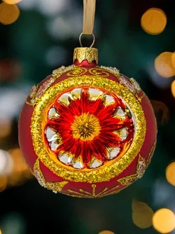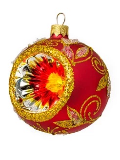 Елочная игрушка стеклянная декорированная "Прожектор красный мал."