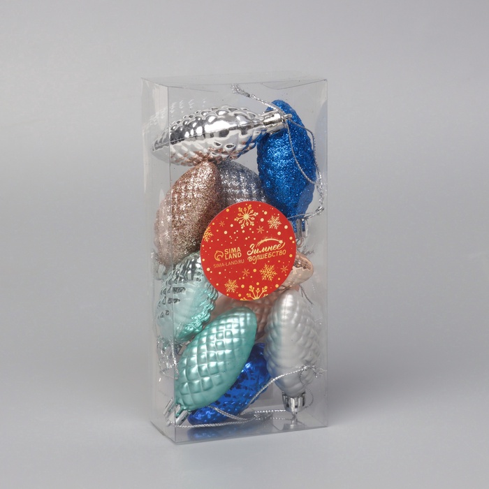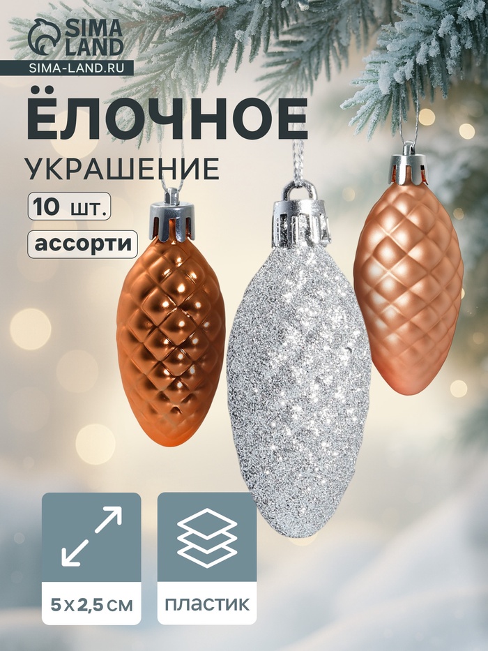 Тонкие линии зимней сказки на вашей ёлке. Новогодние игрушки «Шишка — морозная нежность» — это 10 украшений в разноцветном ассорти, выполненных из прочного пластика. Игрушки в форме шишек с резным узором создают ощущение воздушности и праздника. Дизайн сочетает современный стиль шебби-шик и ностальгию советского дизайна, подчёркивая связь времён в новогоднем оформлении.