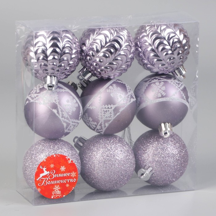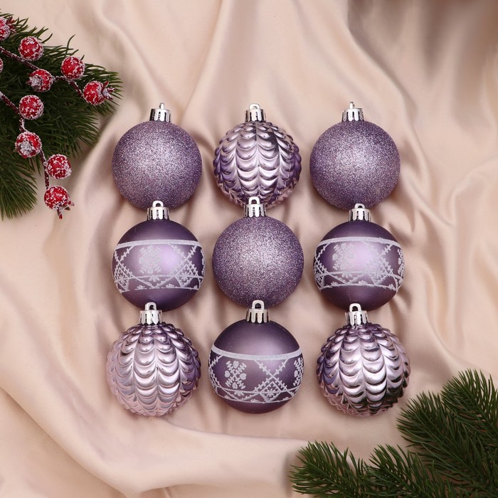 Создание праздничного настроения Сиреневые шары с узорами добавляют ёлке изысканность и глубину образа. Их цвет и стиль сочетаются с разнообразными элементами декора, создавая атмосферу тепла и уюта в новогоднем интерьере. КомплектацияНабор шаров - 9 штук. Комментарии к товару