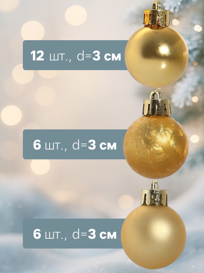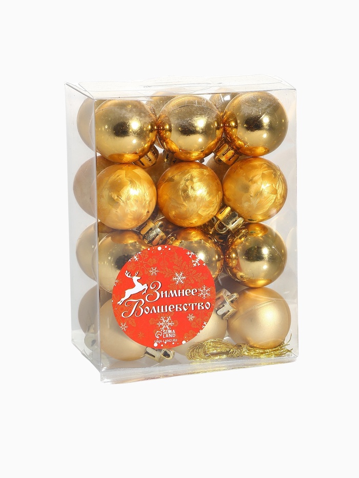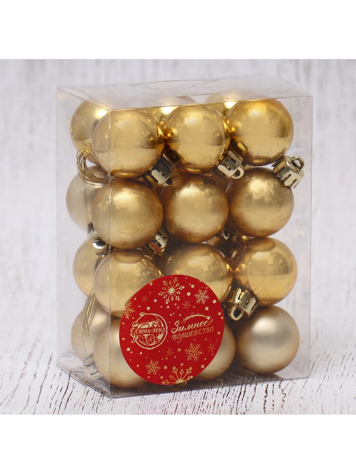 Ёлочные игрушки «Классика ассорти», шары новогодние, d=3 см, набор 24 шт., золотистый