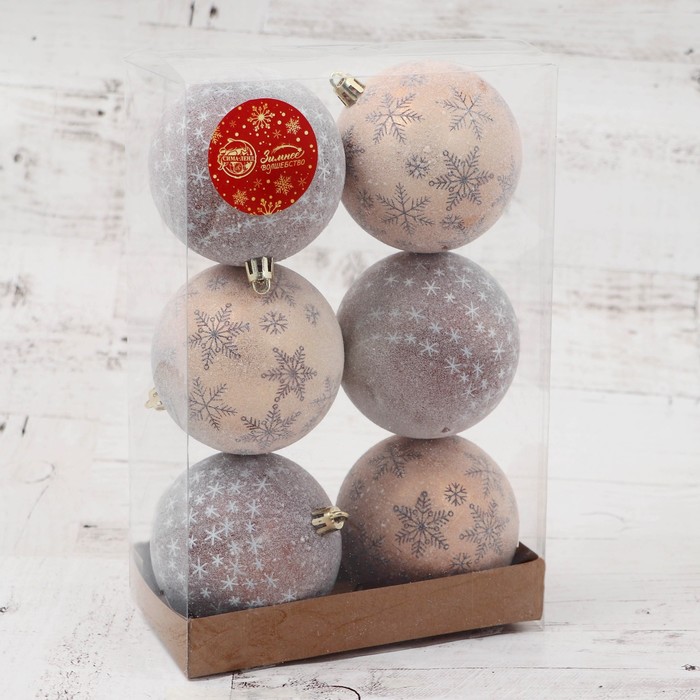 Новогодние шары «Морозное утро» — это тёплый акцент для тех, кто украшает ёлку с любовью к природным оттенкам. В наборе 6 пластиковых игрушек диаметром 8 см с рисунком в коричневой гамме — каждая игрушка напоминает замёрзшую ветвь или следы инея на стекле. Такие украшения добавляют интерьеру уюта и создают атмосферу зимнего утра. Подходят для датского стиля, где важны естественность и лаконичность.