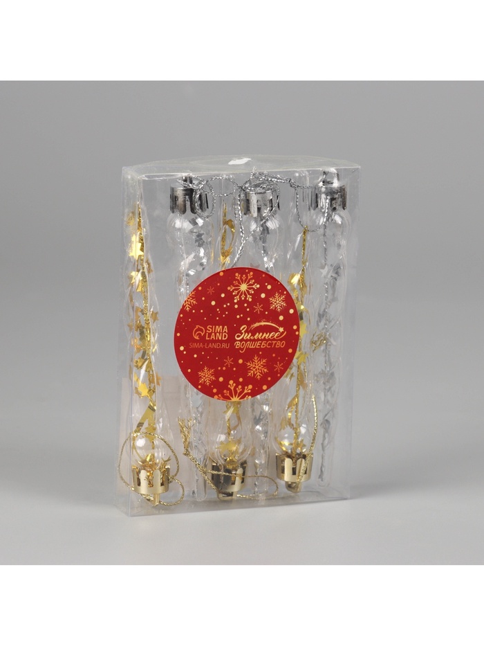 Ёлочные игрушки набор 6 шт. «Сосулька», 11.5×1 см, золото/серебро