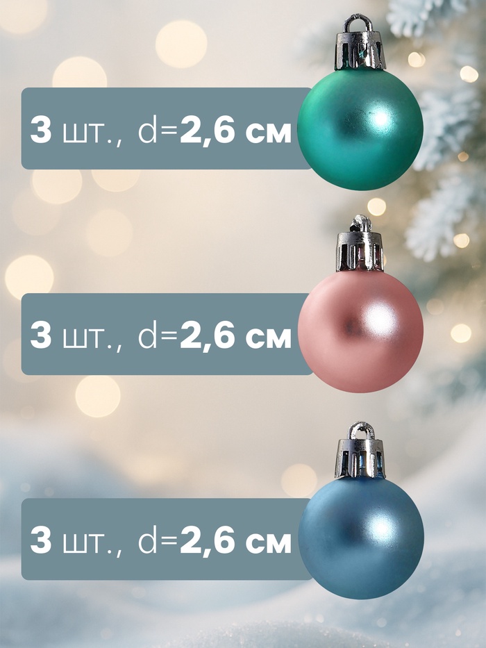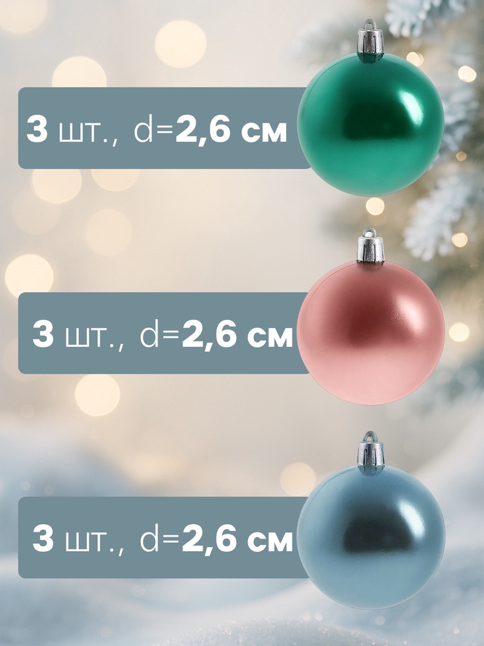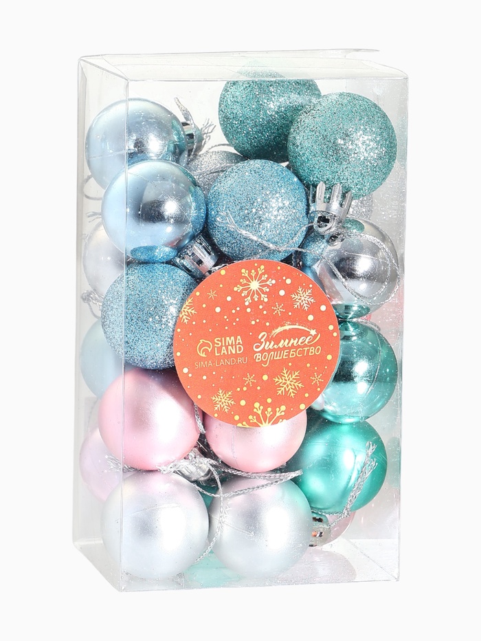 Ёлочные игрушки «Шарм», шары новогодние, d=2.6 см, набор 25 шт., МИКС