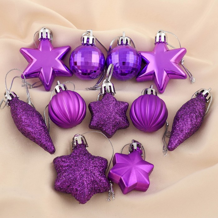 Ёлочные игрушки «Талла» — это уникальный набор из 12 шаров, который привнесет волшебство фиолетового оттенка в вашу новогоднюю атмосферу. В него входят 4 изящных шара, 2 утонченные сосульки и 6 завораживающих звезд. Все элементы выполнены из пластика, что делает набор не только стильным, но и долговечным. Они однотонные и идеальны для украшения елки в любом интерьере. Подарите себе и своим близким незабываемое праздничное настроение вместе с этим набором.