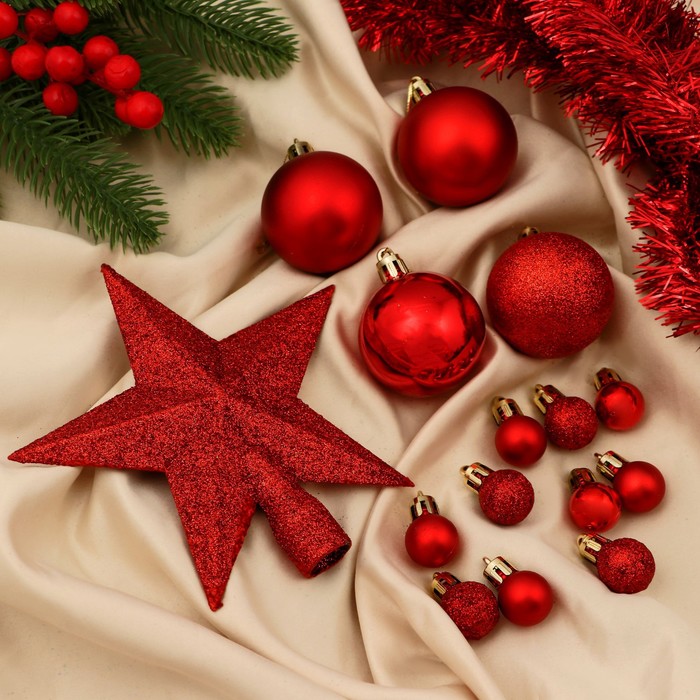 Создайте праздничное настроение Этот комплект украшений оживит новогодний интерьер, добавит насыщенный красный акцент и подчеркнёт торжественность момента. Мишура и однотонные шары гармонично дополняют друг друга, формируя цельный образ, который легко вписывается в разные стилистические решения. Лёгкие элементы удобно развешивать и хранить после праздников. Комментарии к товару