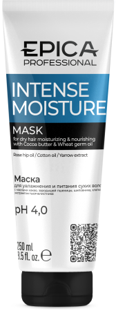 Маска с маслами какао и зародышей пшеницы интенсивно смягчает, питает и удерживает влагу в структуре волоса. Повышает упругость, возвращает естественный блеск, оказывает кондиционирующее действие. Экстракты шиповника и тысячелистника обладают антиоксидантными свойствами, а экстракт хлопка облегчает расчесывание. Предназначена для сухих волос, делает волосы мягкими и шелковистыми.