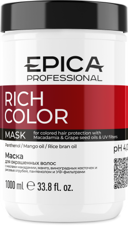 Маска с комплексом масел и пантенолом интенсивно смягчает, питает и восстанавливает волосы. Защищает от УФ-лучей, способствует сохранению структуры волоса. Предназначена для окрашенных волос, сохраняет цвет, делает волосы мягкими и шелковистыми, улучшает расчёсывание.