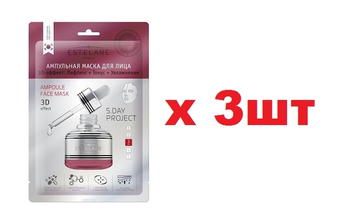 Estelare Ампульная маска для лица 3D эффект:Лифтинг+Тонус+Увлажнение 3шт