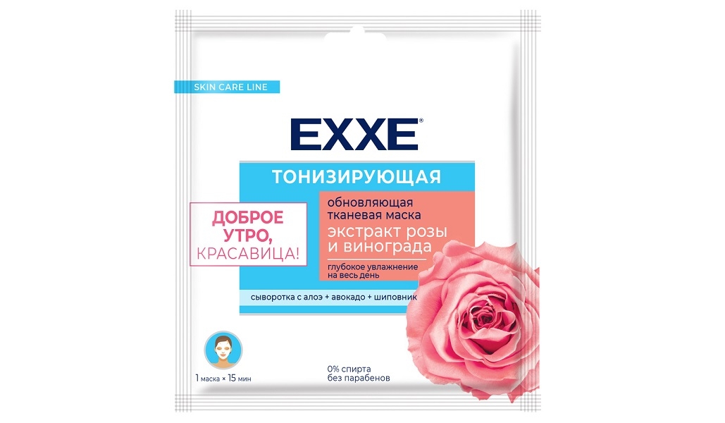 Увлажняющая тонизирующая тканевая маска для красоты лица с экстрактом розы и красного винограда и экстрактом алоэ мгновенно насыщает кожу энергией и делает ее сияющейи свежей.