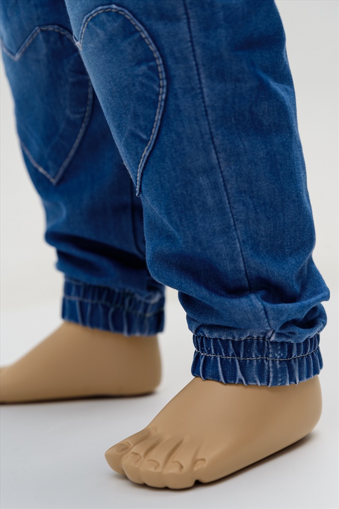 Джинсы из мягкого денима. Внутри эластичный пояс и функциональный шнур. На коленях декоративные элементы.