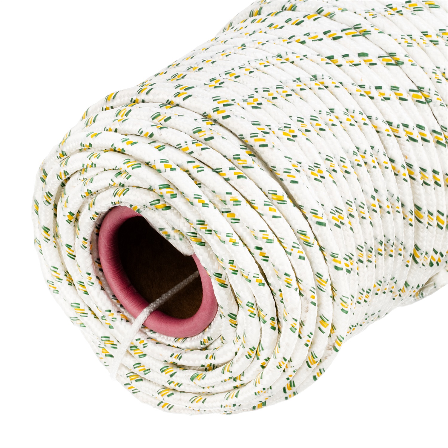 Плетеный капроновый фал Сибртех 93970, 16-прядный, с сердечником, длиной 100 м и диаметром 8 мм, используется для подъема и закрепления грузов, установки различных конструкций. Востребован в сельском хозяйстве, строительстве, нефтяной промышленности, на транспорте, в спорте, рыболовстве. Также применяется в ходе спасательных работ. Шнур имеет полиамидный сердечник, обладает высокой упругостью и выдерживает разрывную нагрузку 1000 кгс. Преимущества