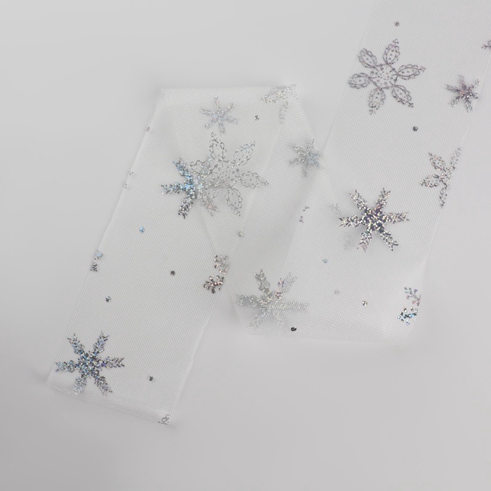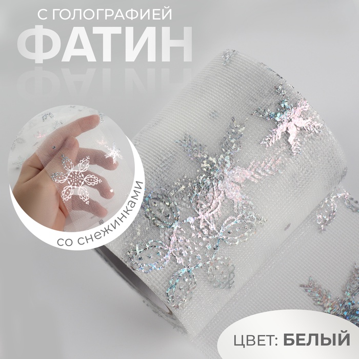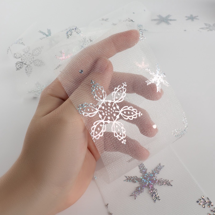 Фатин со снежинками, с голографией, 7.5 см, 9.1±0.5 м, 11±1 г/м², белый №33