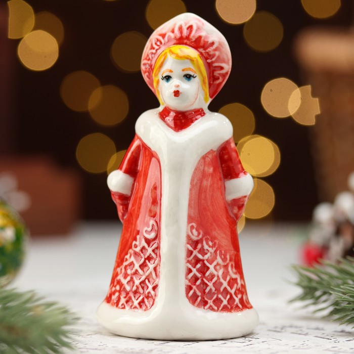 Фигурка фарфор «Снегурочка Снежинка красная шуба», 12 см