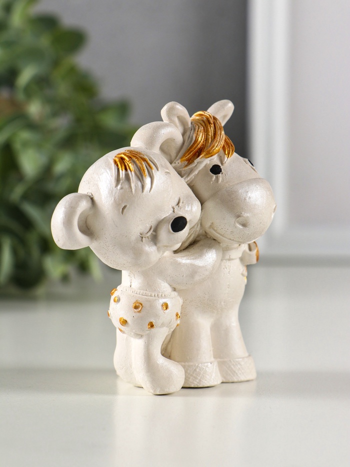 Эта перламутровая фигурка станет трогательным знаком внимания на самый разный случай. Медвежонок, бережно держащий лошадку, символизирует заботу и верную дружбу. Универсальный сюжет делает подарок уместным и на Новый год, и в честь рождения малыша.