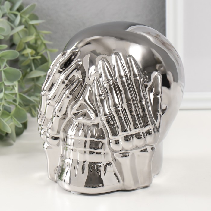 Фигурка керамика «Череп с кистями на глазах», серебро, 13.5×14×15 см