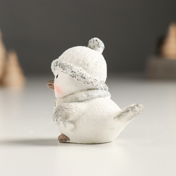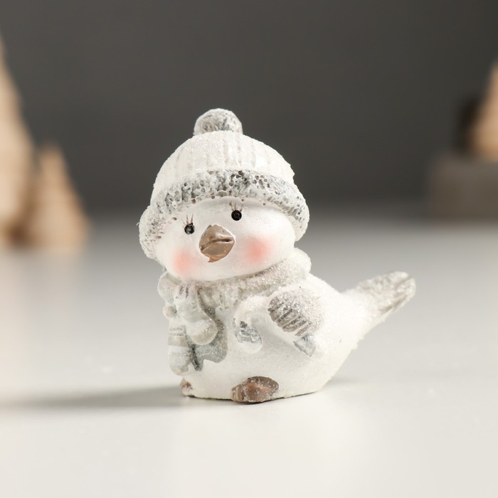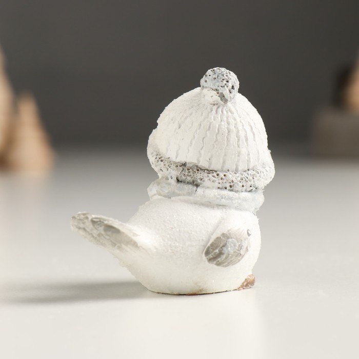 Фигурка полистоун «Белый птенчик в шапке и вязанном шарфе», серебро, 5×3.5×5 см, МИКС