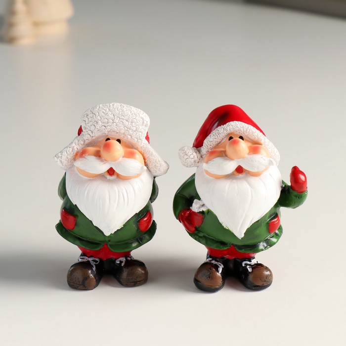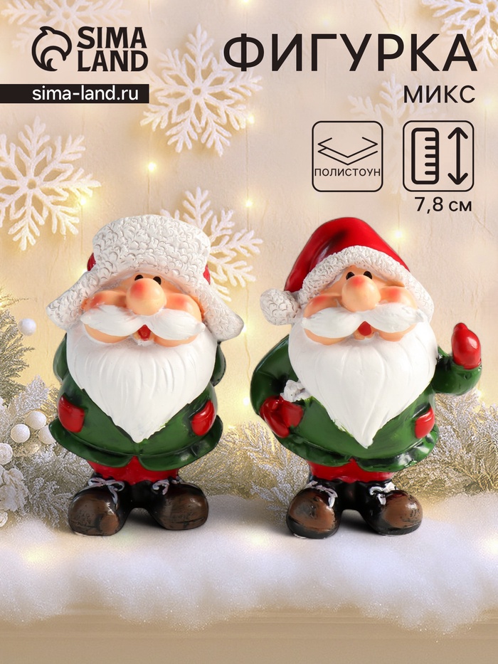 Фигурка полистоун «Дед Мороз в зелёном кафтане в колпаке, весельчак», 6×4×7.8 см, МИКС