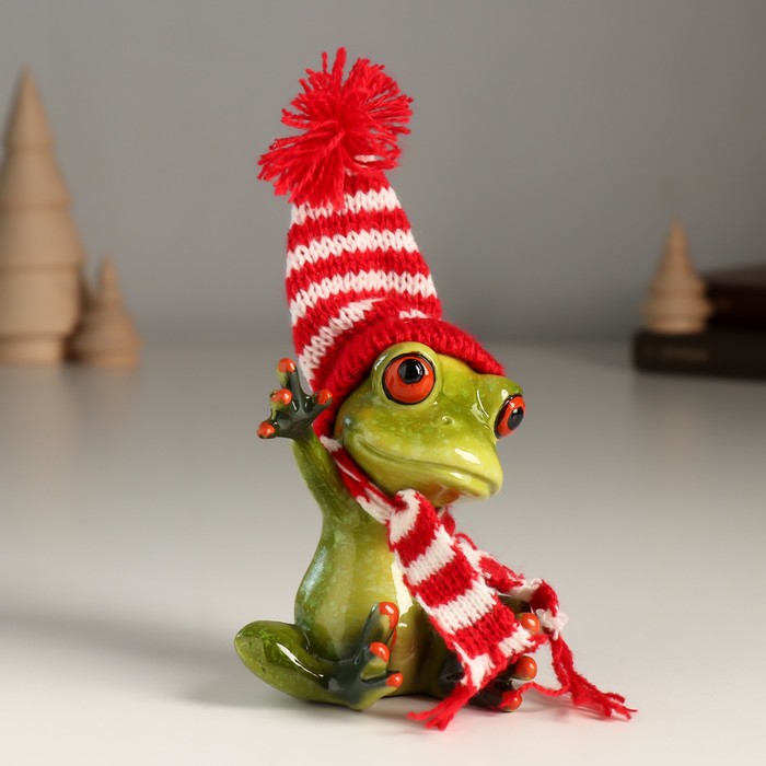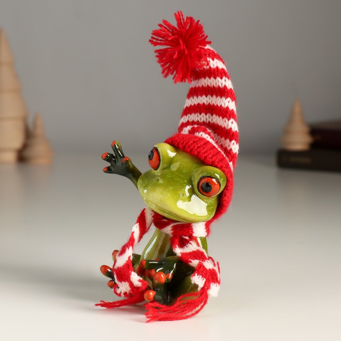 Фигурка полистоун лак «Лягуха в шапочке и шарфике приветствует», 7.7×6.3×13 см