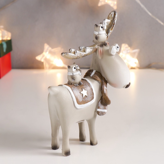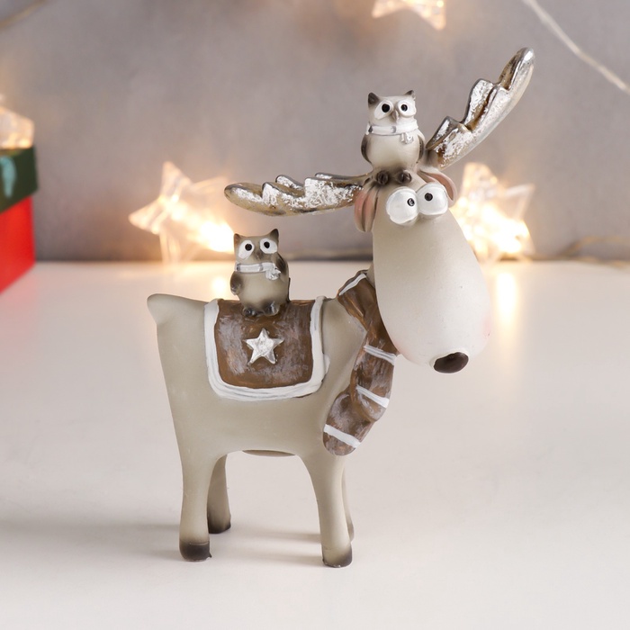 Фигурка полистоун «Пучеглазый лосик с филинами», 14×10.5×4 см, МИКС