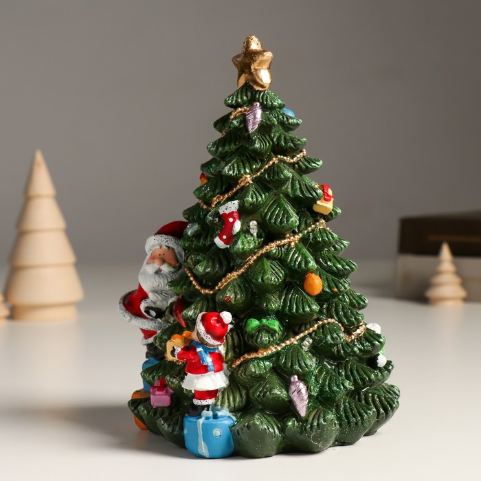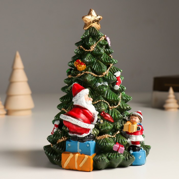 Фигурка светящаяся «Дед Мороз с помощником наряжают ёлочку», 13.5×13×17.5 см