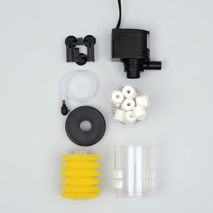 Фильтр крепится на присоски, что позволяет легко установить его в аквариуме.