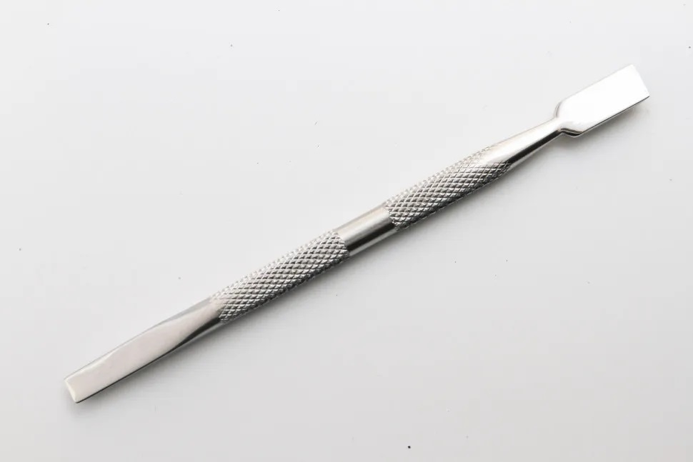 * Двусторонний инструмент: лопатка для бережного отодвигания кутикулы и скруглённый пушер/скребок для очищения птеригия.