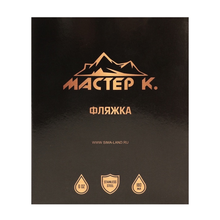 Производитель: Мастер К; Габариты: 3 x 9,5 x 11,5; Страна: Китай; В боксе: 100 шт; Состав: Нержавеющая сталь; Материалы: нержавеющая сталь; Фасовка: по 1 шт; Индивидуальная упаковка: Картонная коробка; Габариты товара: 2,5 см × 9,5 см × 11 см; Сертификат: ЕАС; Цвет: Серебристый; Объём, мл: 180; Рисунок: Нет; Тематика праздника: 23 Февраля; Материал: Пластик, Металл; Вид: Фляжка; Особенности: Под нанесение