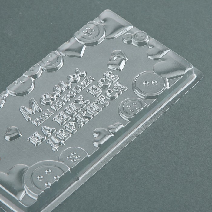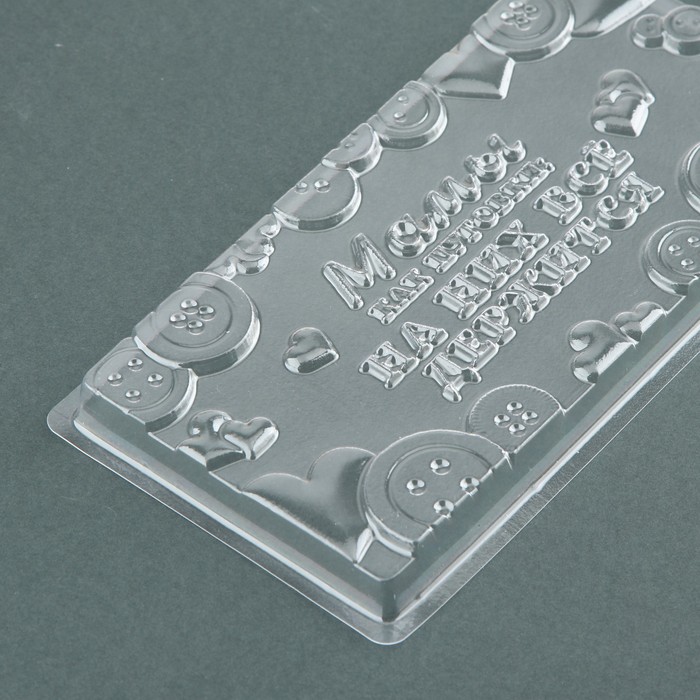 Производитель: KONFINETTA; Габариты: 1 x 13 x 18; Страна: Китай; В боксе: 500 шт; Состав: Пластик; Материалы: пластик; Фасовка: по 10 шт; Индивидуальная упаковка: Клапан, пакет; Габариты товара: 18 см × 9,5 см × 0,1 см; Сертификат: СТР; Набор: Нет; Цвет: Прозрачный; Форма: Прямоугольная; Количество ячеек: 1; Тематика праздника: День матери; Адресат: Маме; Материал: Пластик; Тематика: Взрослые люди; Форма: Плитка; Можно мыть в посудомоечной машине: Да; Фиксированная цена: Да