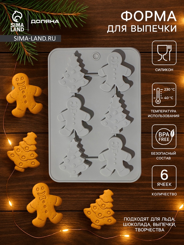 Производитель: Доляна; Габариты: 25,5 x 17,5 x 3; Страна: Китай; В боксе: 120 шт; Состав: Силикон; Материалы: силикон; Фасовка: по 1 шт; Индивидуальная упаковка: Пакет; Габариты товара: 25,5 см × 17,5 см × 2,5 см; Сертификат: СТР; Набор: Нет; Цвет: Серый; Фасовка, шт.: 1; Высота стенки, см: 2,5; Рисунок: Да; Крышка: Нет; Символ года: Нет; Тематика праздника: Новый год; Материал: Силикон; Тип покрытия: Силиконовое; Ячейки: Да; Тип формы: Для печенья и пирожных; Разъёмная форма: Нет; Можно мыть в посудомоечной машине: Да; Перфорированные: Нет