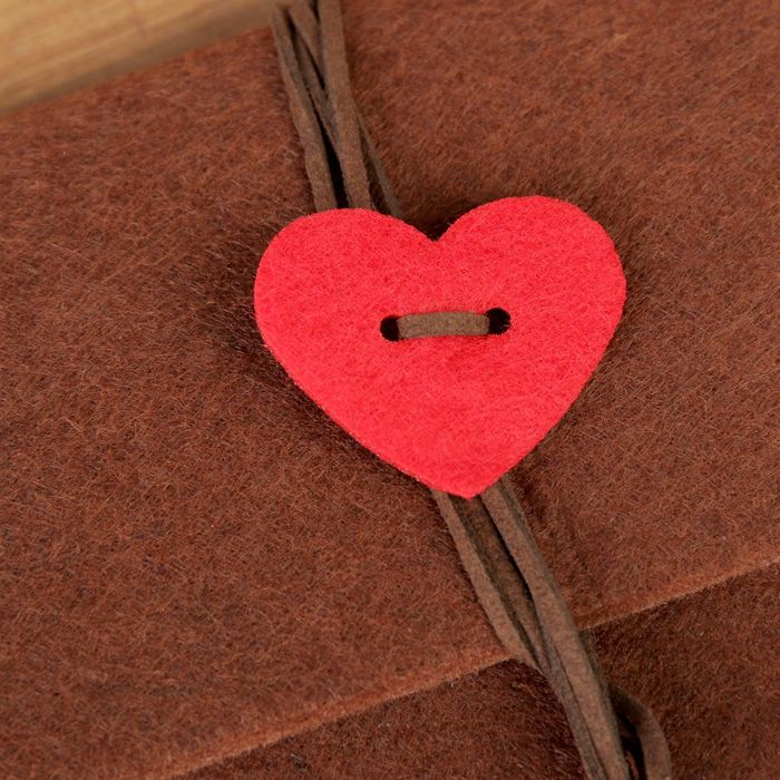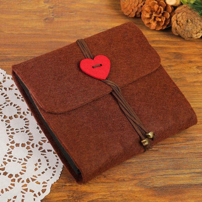 Габариты: 19 x 17,5 x 3; Страна: Китай; В боксе: 66 шт; Состав: Войлок, картон, металл, пластик; Материалы: войлок, картон, металл, пластик; Фасовка: по 1 шт; Индивидуальная упаковка: Пакет; Габариты товара: 19 см × 17,5 см; Сертификат: Не подлежит сертификации; Цвет: Коричневый, Серый; Количество листов: 30; Материал обложки: Фетр; Размер фото: Другие; Материал листов: Картон; Вид обложки: Мягкая; Цвет листов: Чёрный; Тематика: Для влюблённых