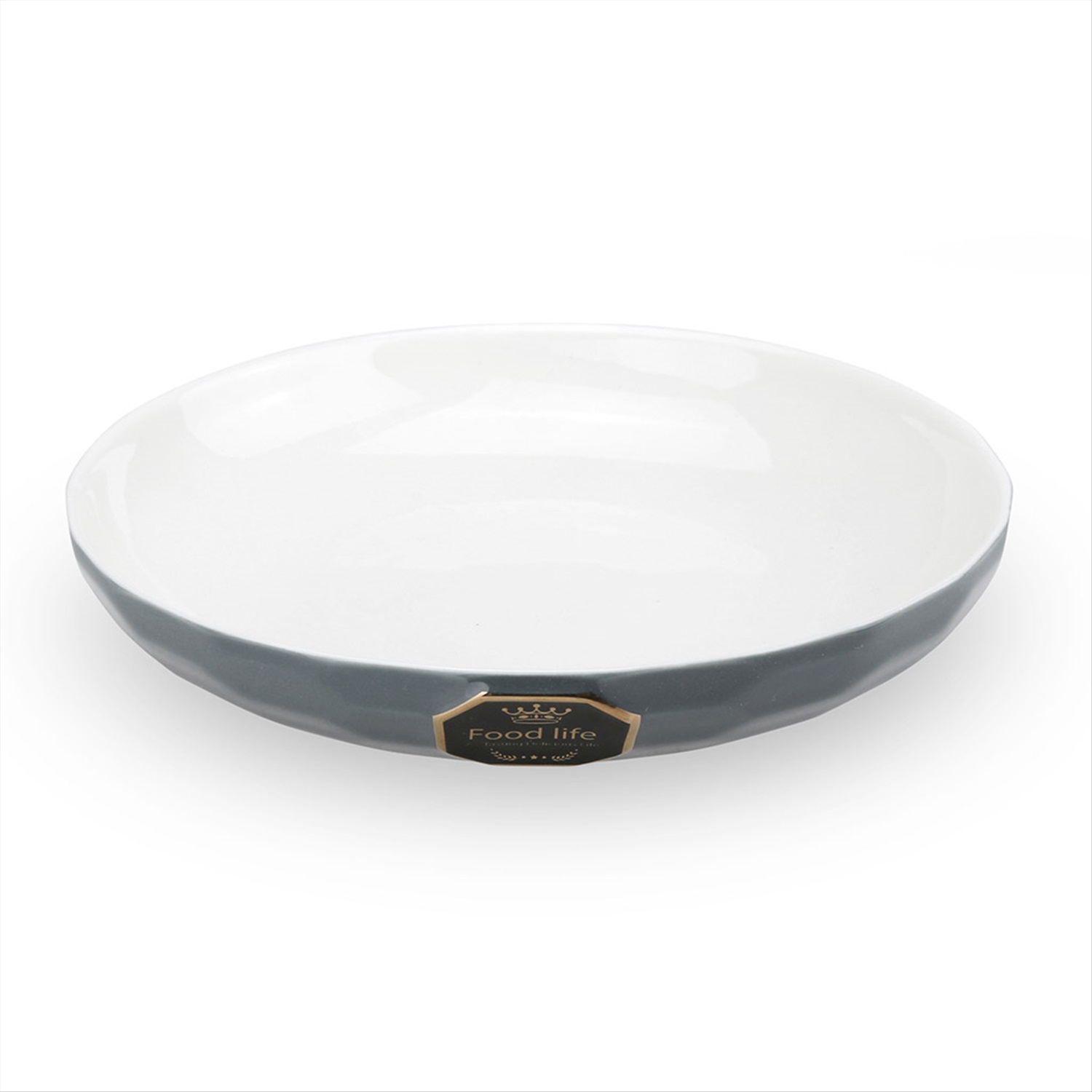 "Фуд лайф (Food life)" Тарелка глубокая фарфоровая 187мм h37мм, 500мл, цвет белый с отводкой/серый, с декором (Китай)