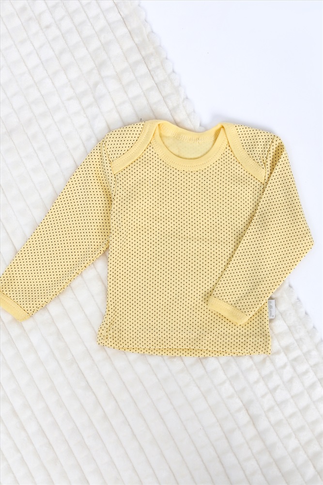 Застежка: без застежки Футболка для мальчика. Длинный рукав. Ткань интерлок. В мелкий горошек.
